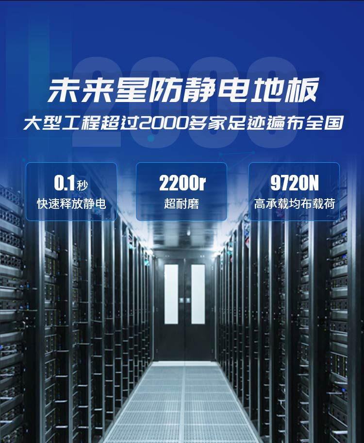 未來星防靜電地板深耕行業(yè)20多年,是大型建筑工程防靜電地板生產(chǎn)基地,公司已與航天航空、國家電網(wǎng)、高鐵站、地鐵站、衛(wèi)星基站等1000+大型工程達成合作。我們秉承高品質(zhì),重服務(wù)的精神,認真對待每一位客戶”
